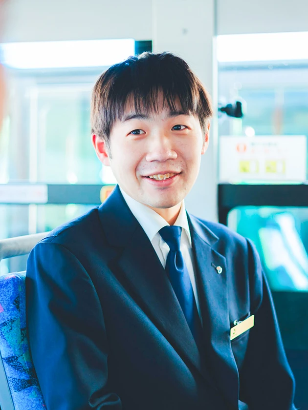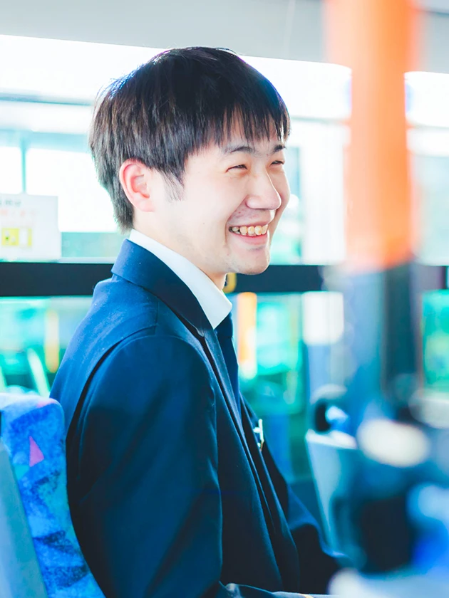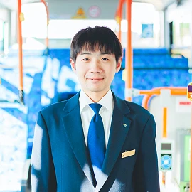 幼少期から公共交通が好きで、大きな車体を自らのテクニックで操る運転士に憧れて一念発起。複数社と迷ったが、ネットの口コミで「人間関係が良い」という評判に背中を押され入社した、期待の若手運転士。