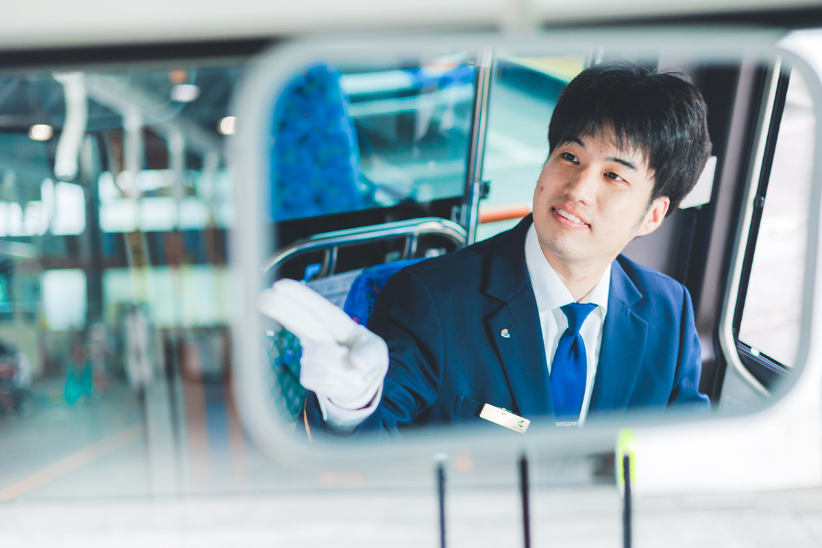 運転技術が必要な、ちょっと難しい路線の運転を楽しんだり、お客様から日々いただける言葉に励まされたり……。私自身、バス運転士の仕事を存分に楽しんでいます。この仕事は、学校に通う学生さんや仕事に向かう社会人の方、家族のために毎日の買い物をする方々など、本当に多くの街の人を支えて地域を活性化させる「誇りを持てる仕事」。運転が好きな方や、人と関わるのが好きな方にとっては天職になり得る仕事です。一緒に楽しみましょう!
