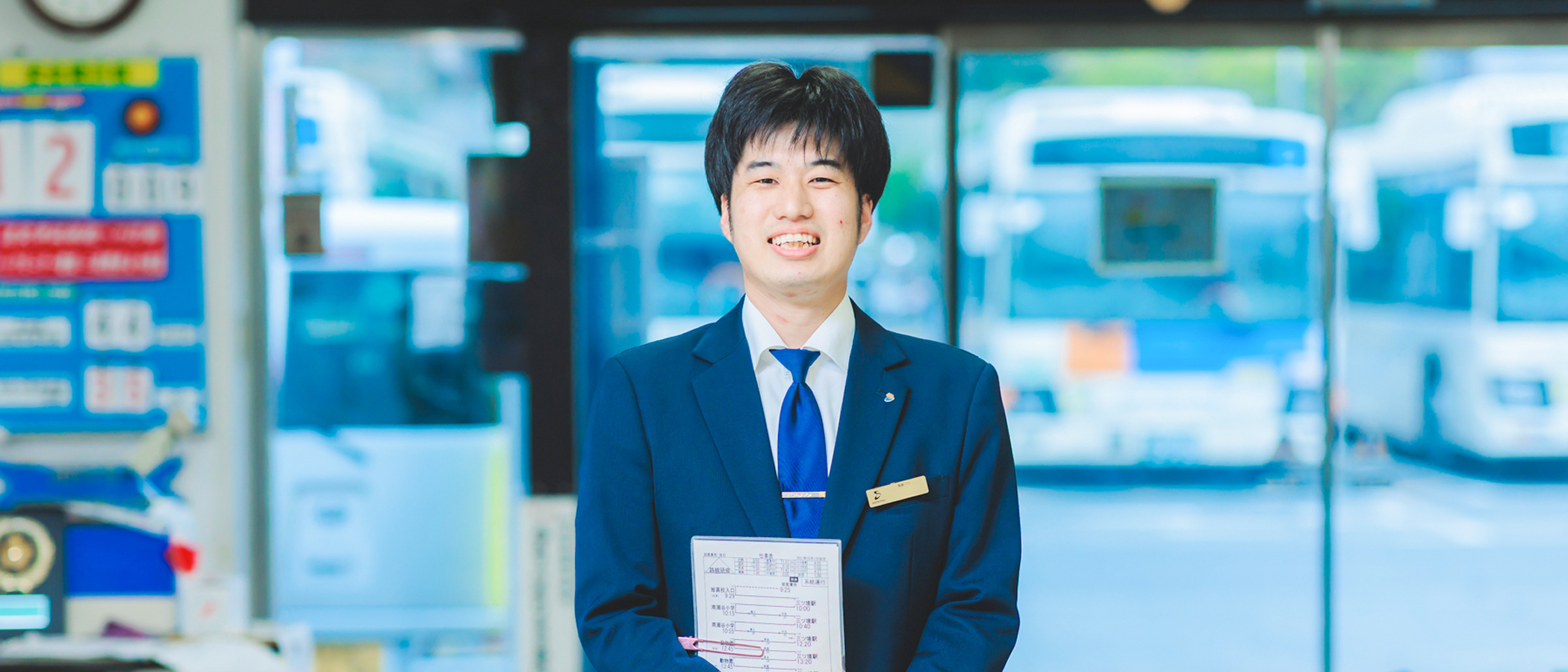 鉄道整備士を目指し通っていた工業大学で、就職説明会に訪れていた相鉄バスと出会う。学生一人ひとりの人柄を見てくれる温かい社風に魅力を感じ、就職先の第一志望に。もともとドライブが趣味なこともあり、「大型車を運転してみたい」という理由から運転士を選んだ。