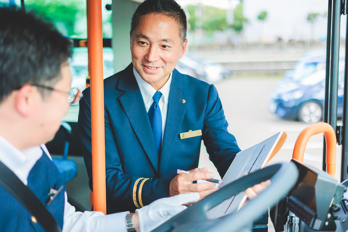 バスの運転には大変なことも多くありますが、運転士は決して一人ではありません。日々の仕事の中で互いに助け合っており、運転士同士で苦労もやりがいも分かち合えます。相鉄バスには運転士としての目標もたくさんあります。たとえば運転が上達して班長に昇格すると、高速バスなどの花形車両を運転できるんです。私自身も初めて高速バスを運転したときには、「ここまでできるようになったんだ」と大きな達成感を覚えました。入社前から、乗客だった私から見ても、相鉄バスは神奈川で一番のバス会社だと思っています。そんな地域の顔として働ける喜びと、運転士として成長できるやりがいを一緒に味わっていただきたいと思っています。