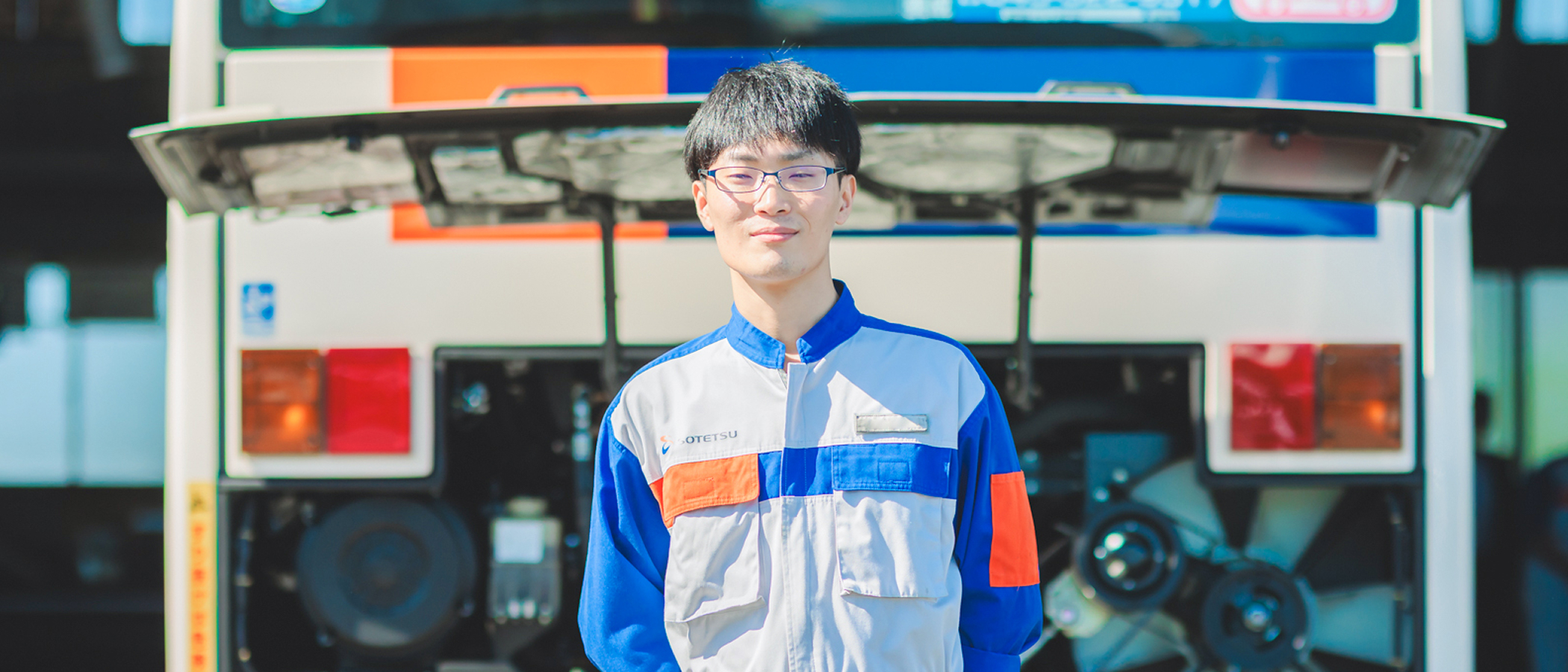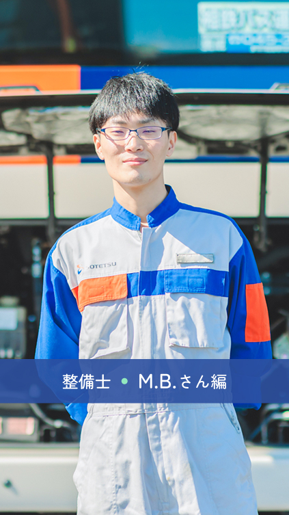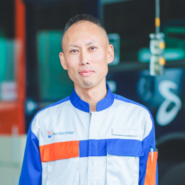 父のバイクの後ろに乗って旅をした幼少期から、根っからの車好き。「車を直して人に喜んでほしい」と4年制の整備専門学校へ。一級自動車整備士を取得した後に新卒で相鉄バスへ入社した。決め手は、経営の安定性もさることながら、面接で感じたやわらかい雰囲気に惹かれたから。